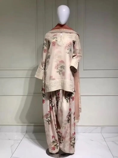 DESIGNER CHIFFON GEORGETTE DIGITAL PRINT WITH HEAVY EMBROIDERY WORK TOP PATIYALA WITH DUPATTA OFF WHITE IN LARGE