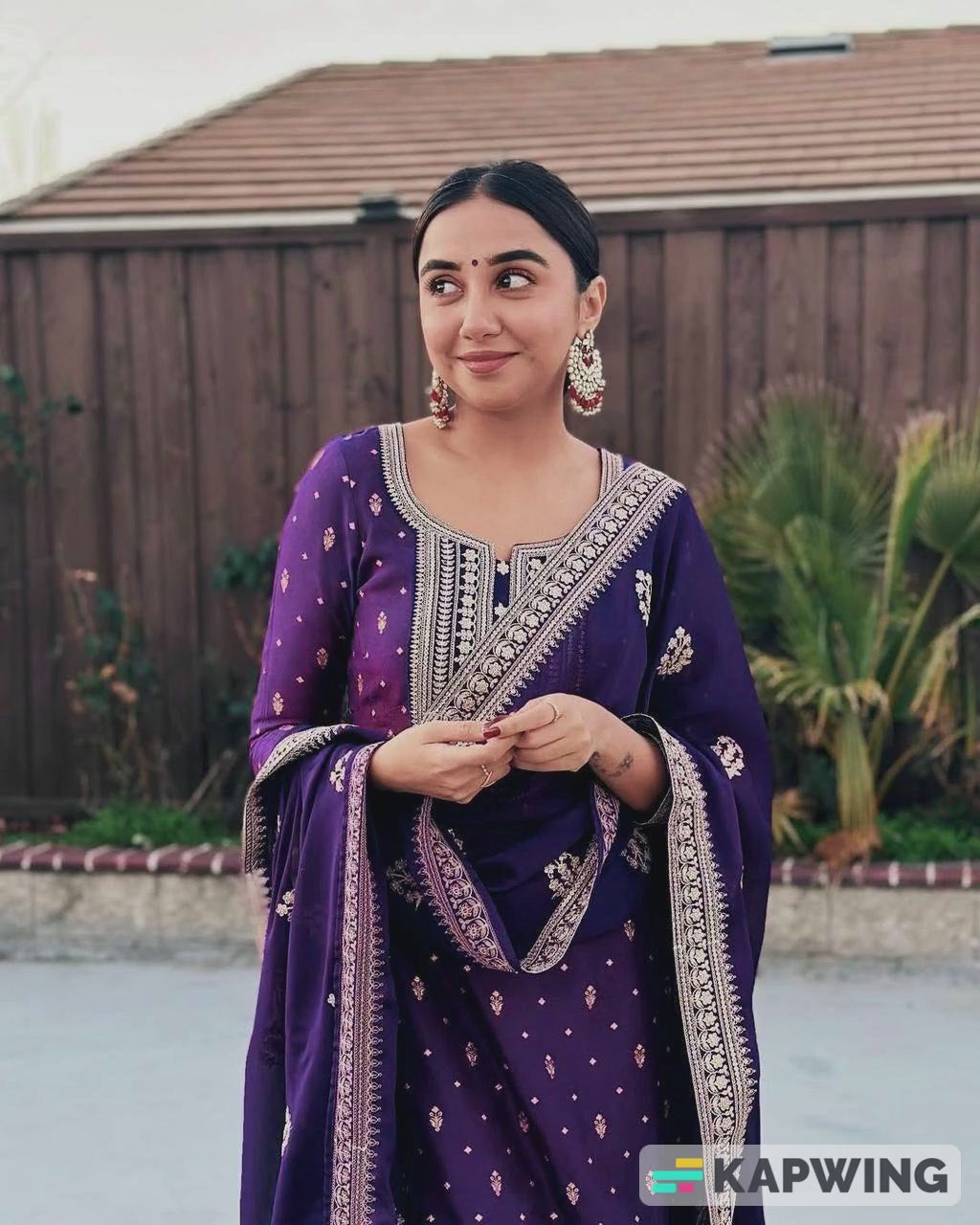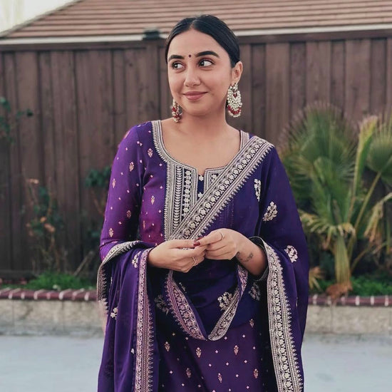 DESIGNER GEORGETTE EMBROIDERY SEQUENCE MOTI WORK TOP BOTTOM WITH DUPATTA PURPLE