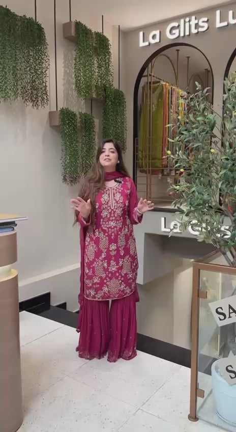 DESIGNER GEORGETTE EMBROIDERY SEQUENCE WORK TOP SHARARA WITH DUPATTA