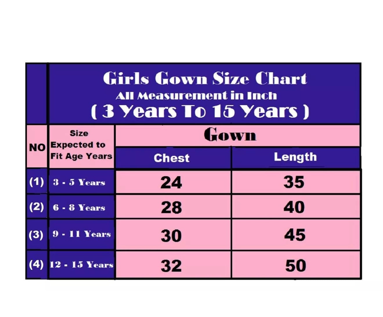 | GOWN : FABRICE :- HEAVY FAUX GEORGETTE WITH DIGITAL PRINT WORK WITH DORI AND LACE ZIPPER :- AVAILABLE INNER :- MICRO COTTON GOWN :- FULL STITCHED DUPATTA : FABRICE :- HEAVY NET WITH LACE BORDER DUPATTA :- FULL STITCHED SIZE : 4 YRS (REFER TO SIZE CHART) |