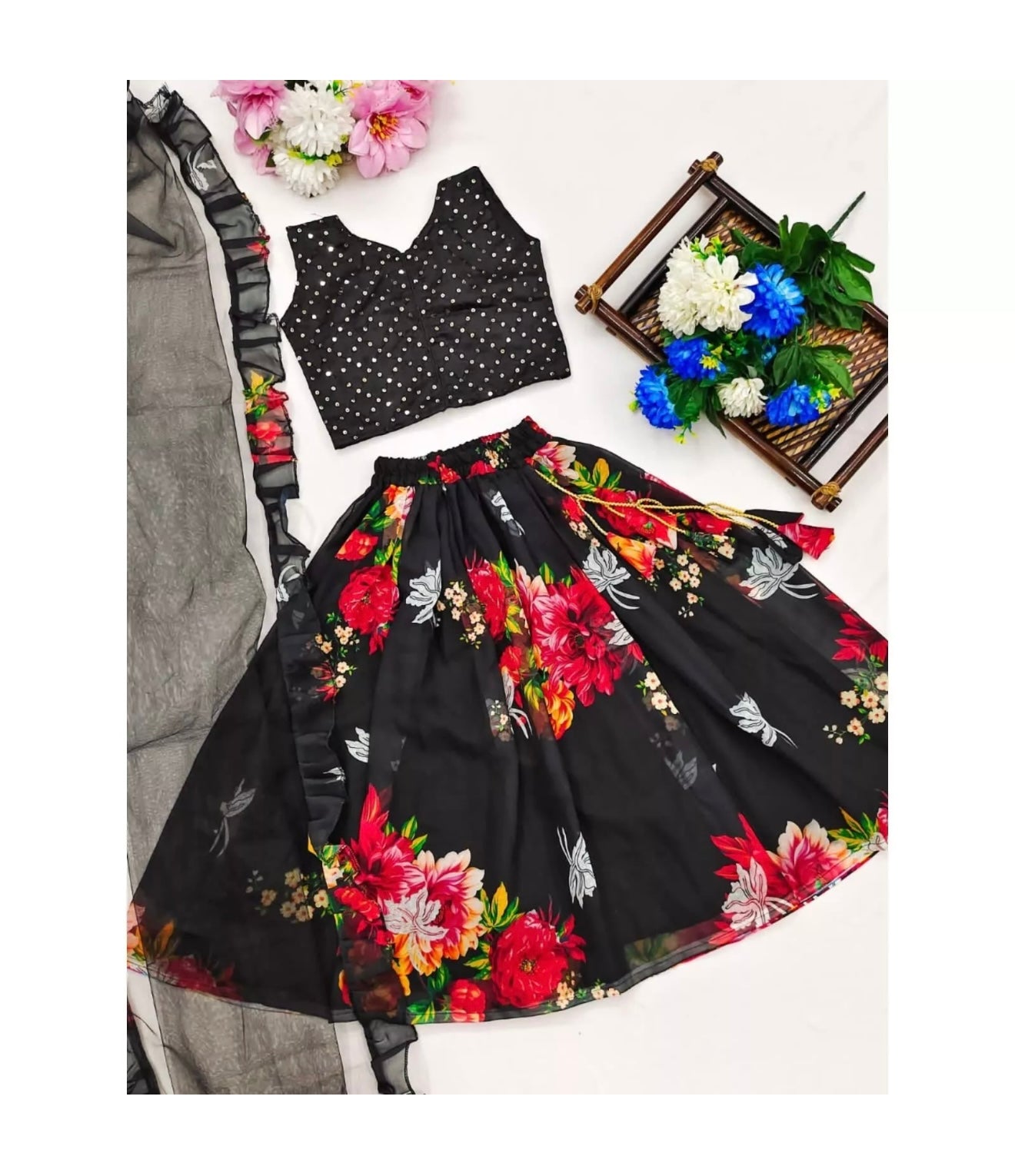 Kids Indian Traditional DESIGNER GEORGETTE DIGITAL PRINT WORK LEHENGA CHOLI age 4