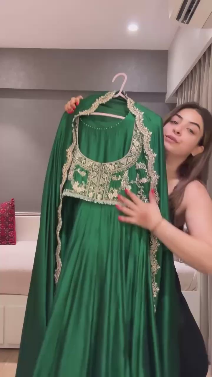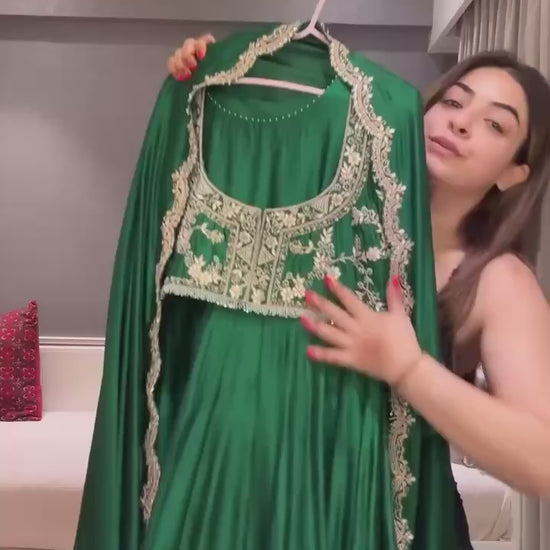 MODERN CHINON SILK EMBROIDERY SEQUENCE WORK GOWN KOTI WITH DUPATTA GREEN