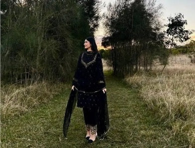 MOST PICKED GEORGETTE EMBROIDERY SEQUENCE ZARI WORK TOP PALAZZO WITH DUPATTA BLACK